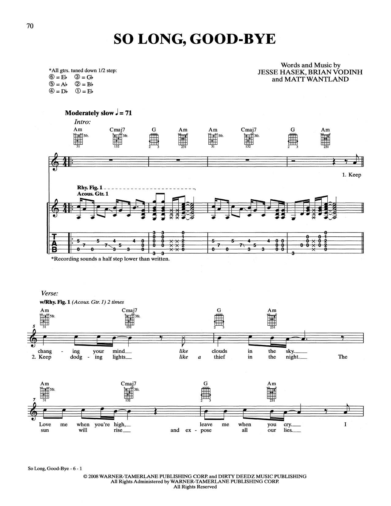 Download or print 10 Years So Long, Good-Bye sheet music, chords and digital score arranged for Guitar Tab. This Alternative score includes 6 page(s).