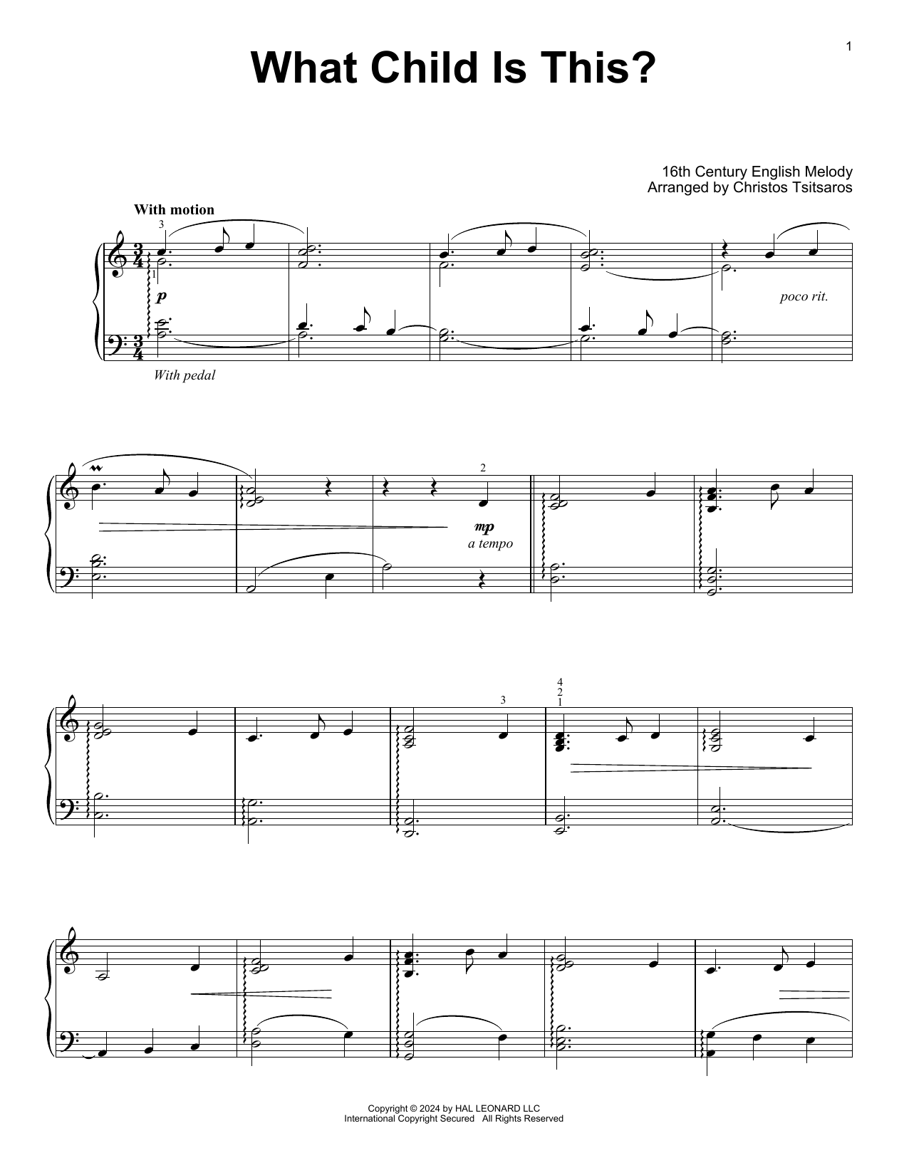 Download or print 16th Century English Melody What Child Is This? (arr. Christos Tsitsaros) sheet music, chords and digital score arranged for Easy Piano Solo. This Holiday score includes 4 page(s).