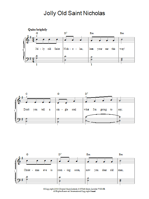 Download or print 19th Century American Carol Jolly Old St. Nicholas sheet music, chords and digital score arranged for Really Easy Piano. This Christmas score includes 1 page(s).