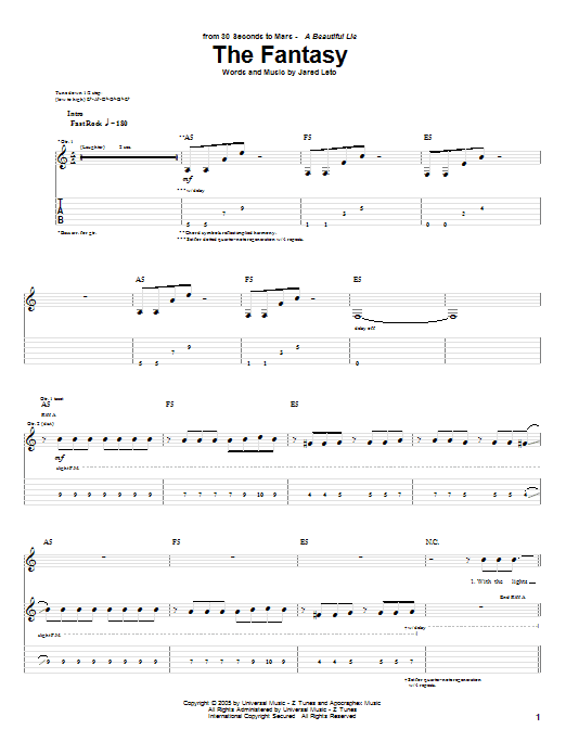 Download or print 30 Seconds To Mars The Fantasy sheet music, chords and digital score arranged for Guitar Tab. This Pop score includes 14 page(s).