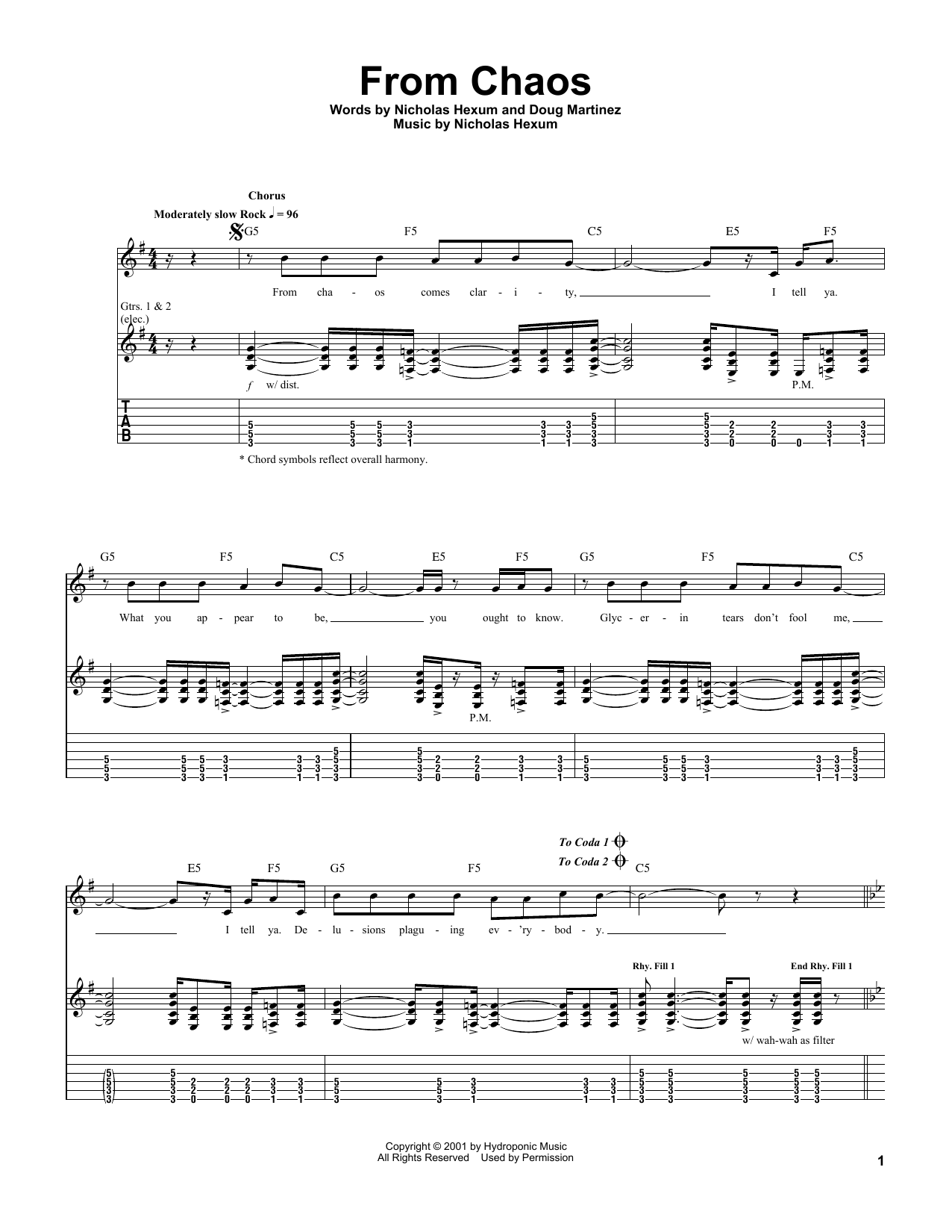 Download or print 311 From Chaos sheet music, chords and digital score arranged for Guitar Tab. This Pop score includes 5 page(s).