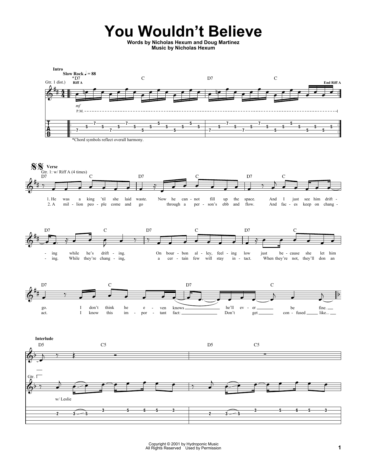 Download or print 311 You Wouldn't Believe sheet music, chords and digital score arranged for Guitar Tab. This Pop score includes 4 page(s).