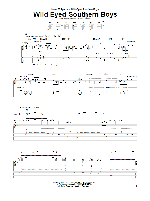 Download or print 38 Special Wild Eyed Southern Boys sheet music, chords and digital score arranged for Guitar Tab. This Rock score includes 14 page(s).