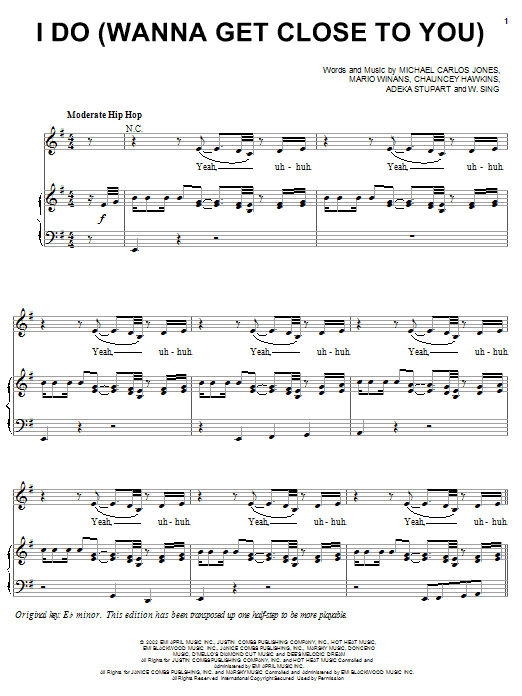 Quick facts I Do (Wanna Get Close To You) about digital sheet music