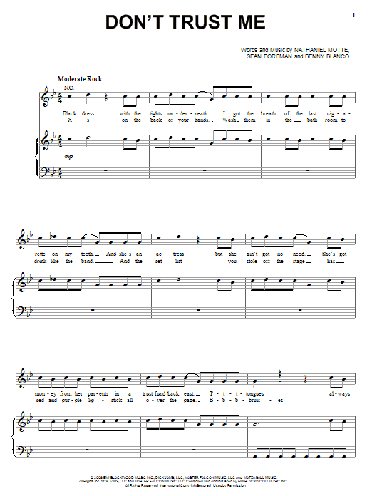 Download or print 3OH!3 Don't Trust Me sheet music, chords and digital score arranged for Piano, Vocal & Guitar Chords (Right-Hand Melody). This Alternative score includes 5 page(s).