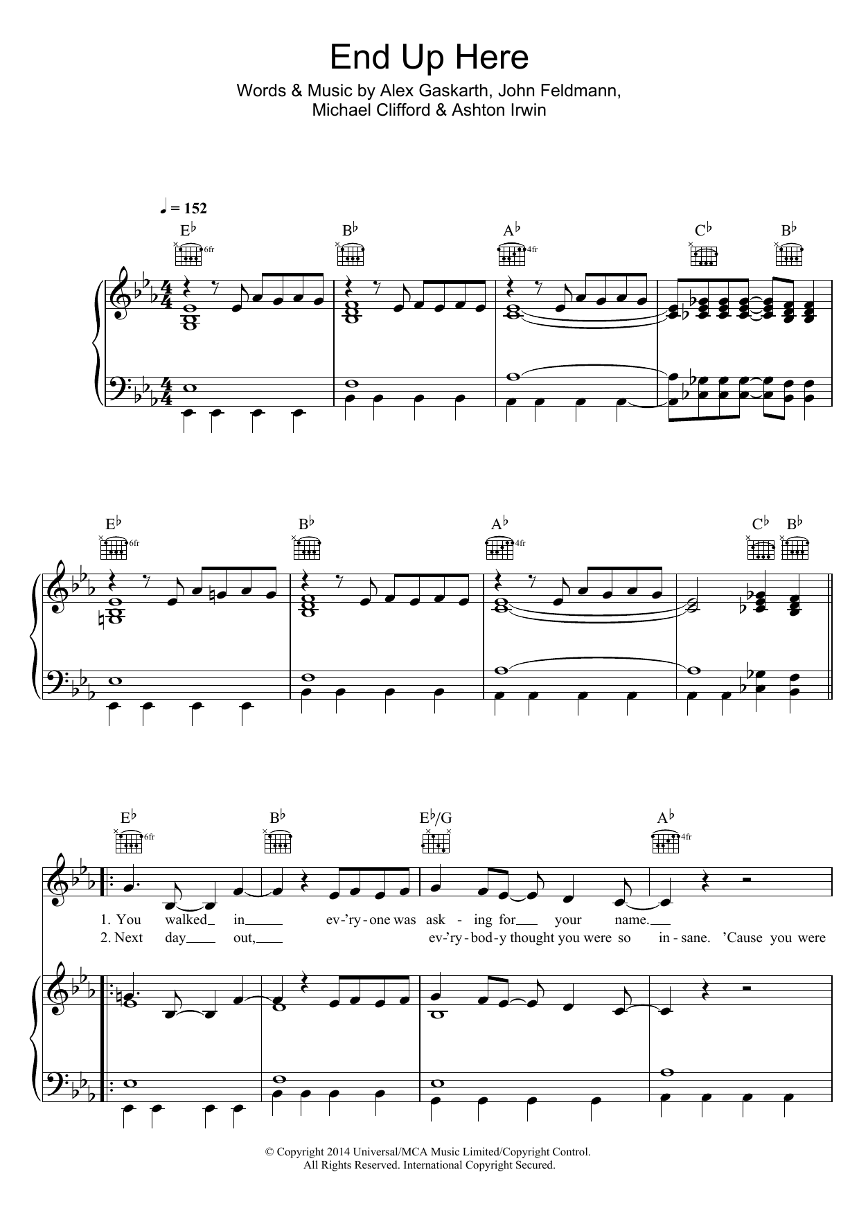 Download or print 5 Seconds of Summer End Up Here sheet music, chords and digital score arranged for Piano, Vocal & Guitar Chords. This Pop score includes 5 page(s).