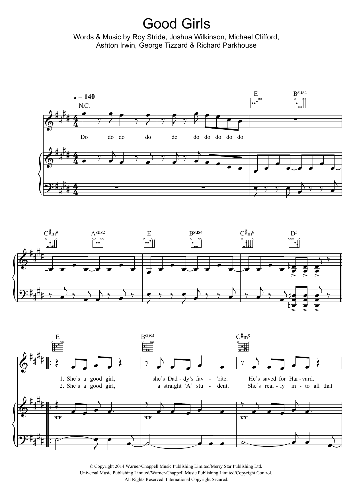 Download or print 5 Seconds of Summer Good Girls sheet music, chords and digital score arranged for Piano, Vocal & Guitar Chords (Right-Hand Melody). This Pop score includes 9 page(s).