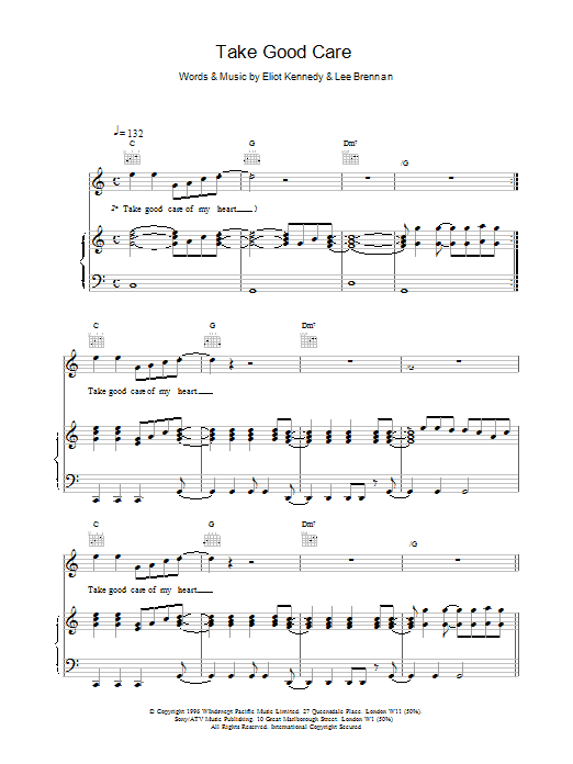 Download or print 911 Take Good Care sheet music, chords and digital score arranged for Piano, Vocal & Guitar Chords. This Pop score includes 6 page(s).