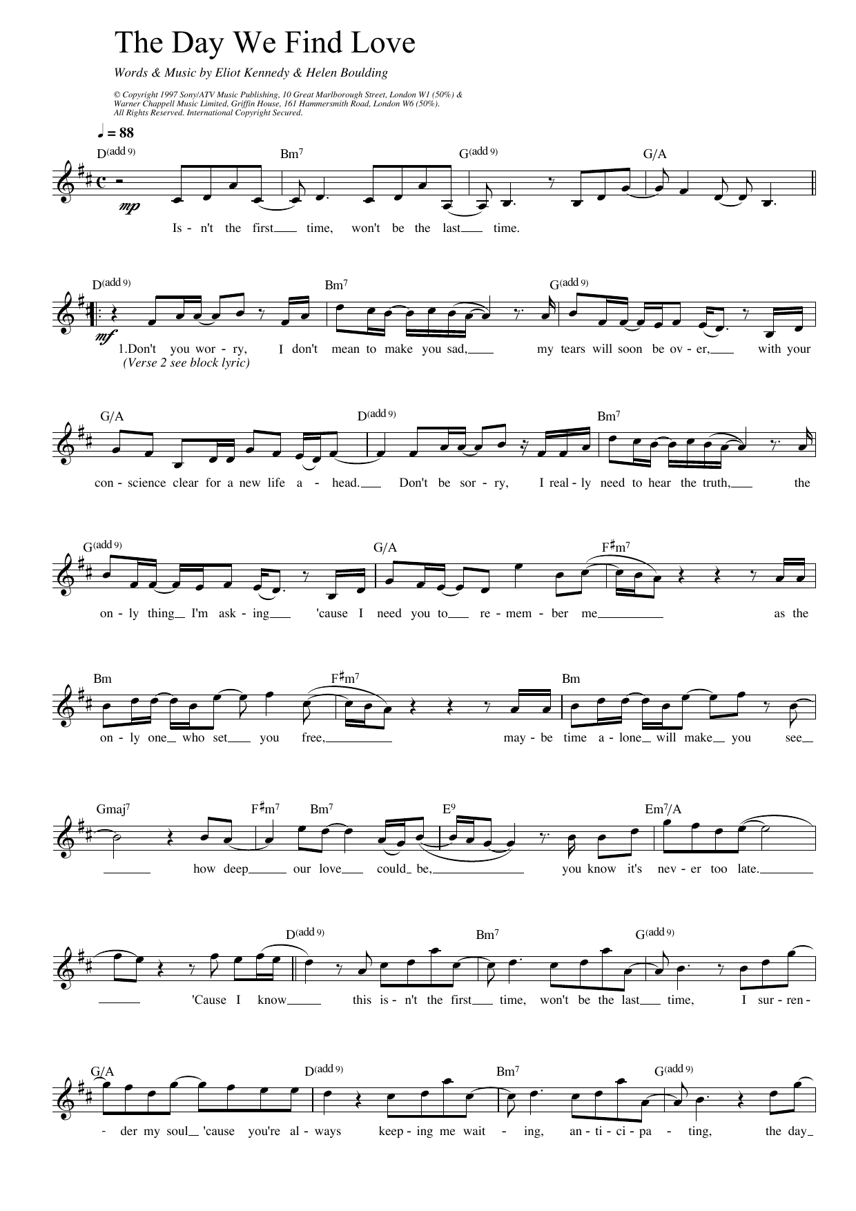 Download or print 911 The Day We Find Love sheet music, chords and digital score arranged for Lead Sheet / Fake Book. This Pop score includes 2 page(s).