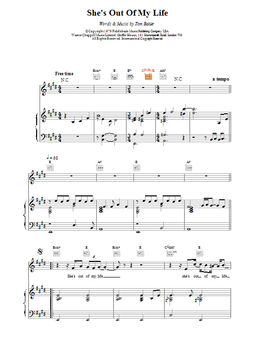 Quick facts She's Out Of My Life about digital sheet music