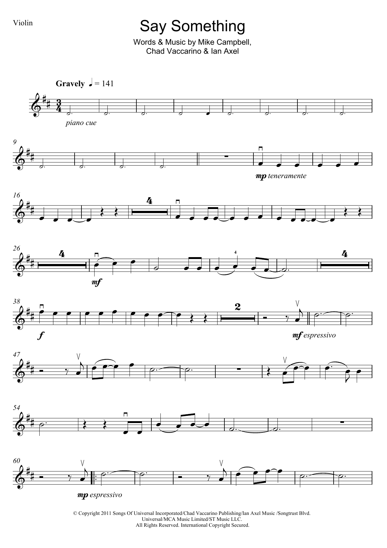 This composition is beautifuly arranged for Violin includes 2 page(s). It is performed by A Great Big World and Christina Aguilera. The style of the score is 'Pop'. Catalog SKU number of the notation is 119630.