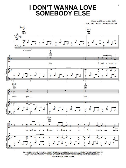 Quick facts I Don't Wanna Love Somebody Else about digital sheet music