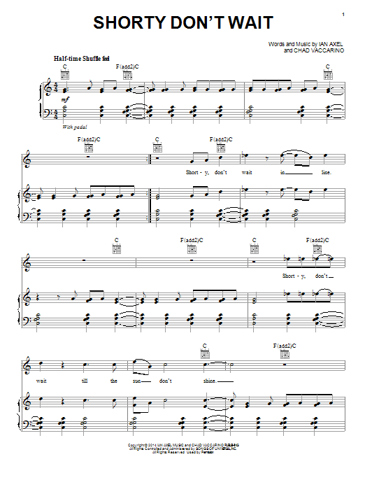 Download or print A Great Big World Shorty Don't Wait sheet music, chords and digital score arranged for Piano, Vocal & Guitar Chords (Right-Hand Melody). This Pop score includes 5 page(s).