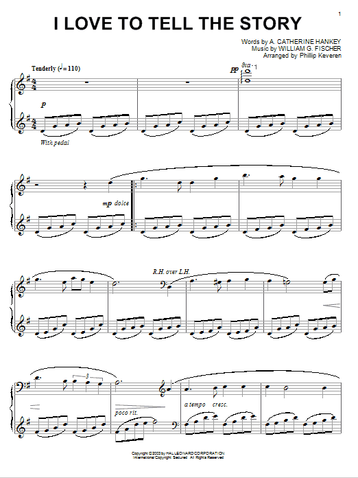 Download or print A. Catherine Hankey I Love To Tell The Story (arr. Phillip Keveren) sheet music, chords and digital score arranged for Piano Solo. This Christian score includes 2 page(s).