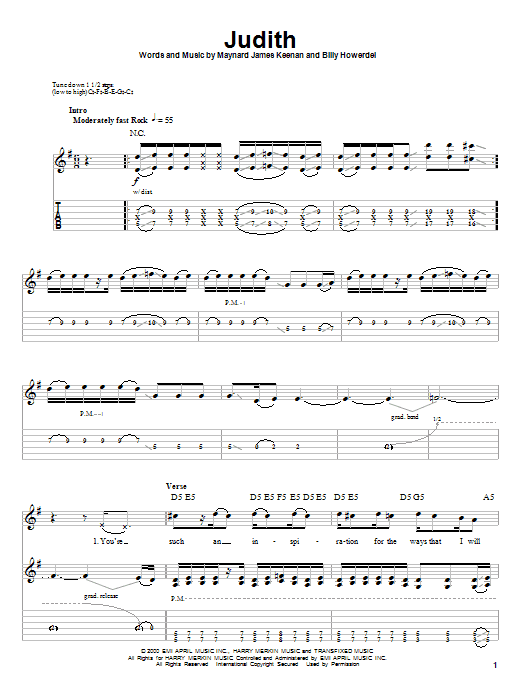 Download or print A Perfect Circle Judith sheet music, chords and digital score arranged for Guitar Tab. This Metal score includes 10 page(s).
