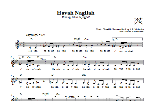 Download or print A.Z. Idelsohn Havah Nagilah (Rise Up; Let Us Be Joyful!) sheet music, chords and digital score arranged for Lead Sheet / Fake Book. This Traditional score includes 1 page(s).