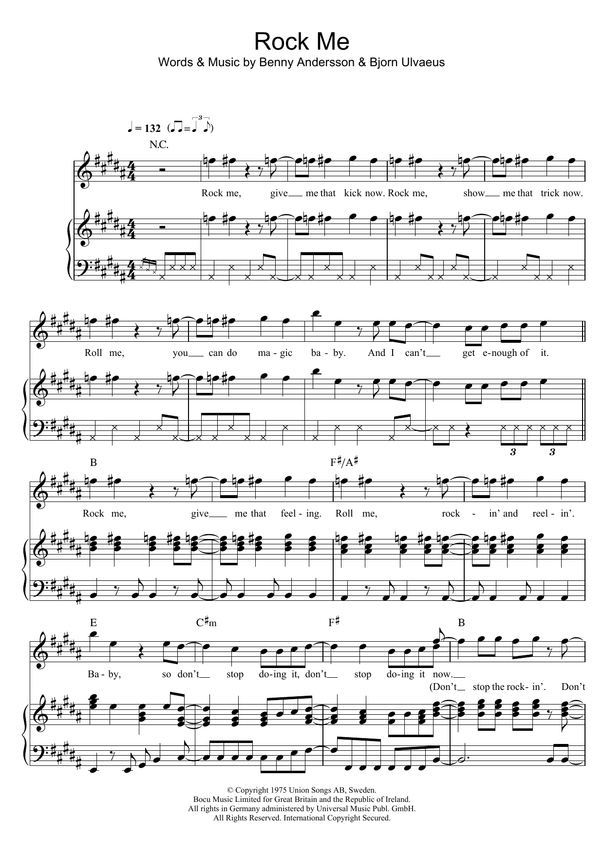 Download or print ABBA Rock Me sheet music, chords and digital score arranged for Piano, Vocal & Guitar Chords. This Pop score includes 4 page(s).