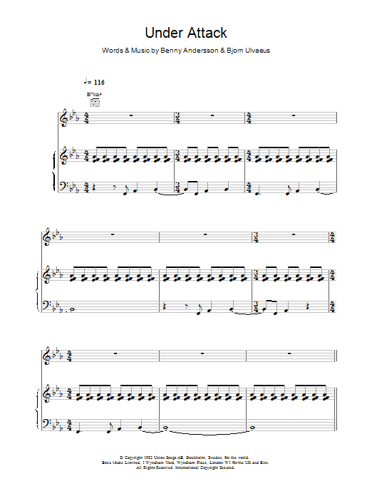Download or print ABBA Under Attack sheet music, chords and digital score arranged for Really Easy Piano. This Pop score includes 3 page(s).
