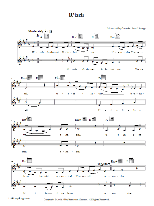 Download or print Abby Gostein R'tzeh sheet music, chords and digital score arranged for Lead Sheet / Fake Book. This Traditional score includes 2 page(s).