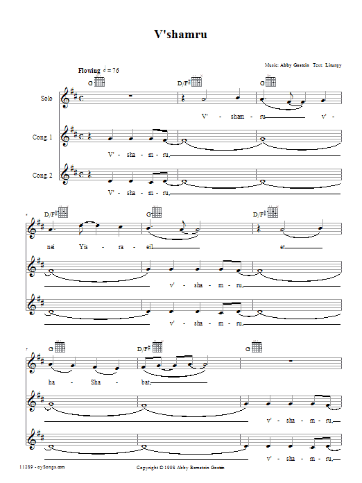 Download or print Abby Gostein V'shamru sheet music, chords and digital score arranged for Choir. This Traditional score includes 6 page(s).