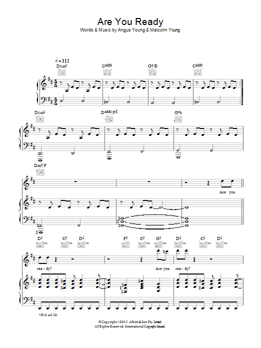 Download or print AC/DC Are You Ready sheet music, chords and digital score arranged for Guitar Chords/Lyrics. This Rock score includes 2 page(s).