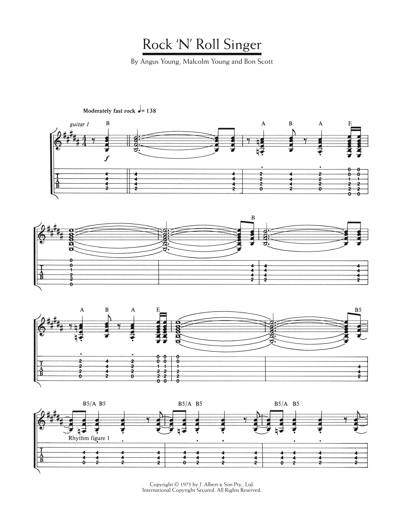 Download or print AC/DC Rock 'N' Roll Singer sheet music, chords and digital score arranged for Guitar Chords/Lyrics. This Rock score includes 3 page(s).