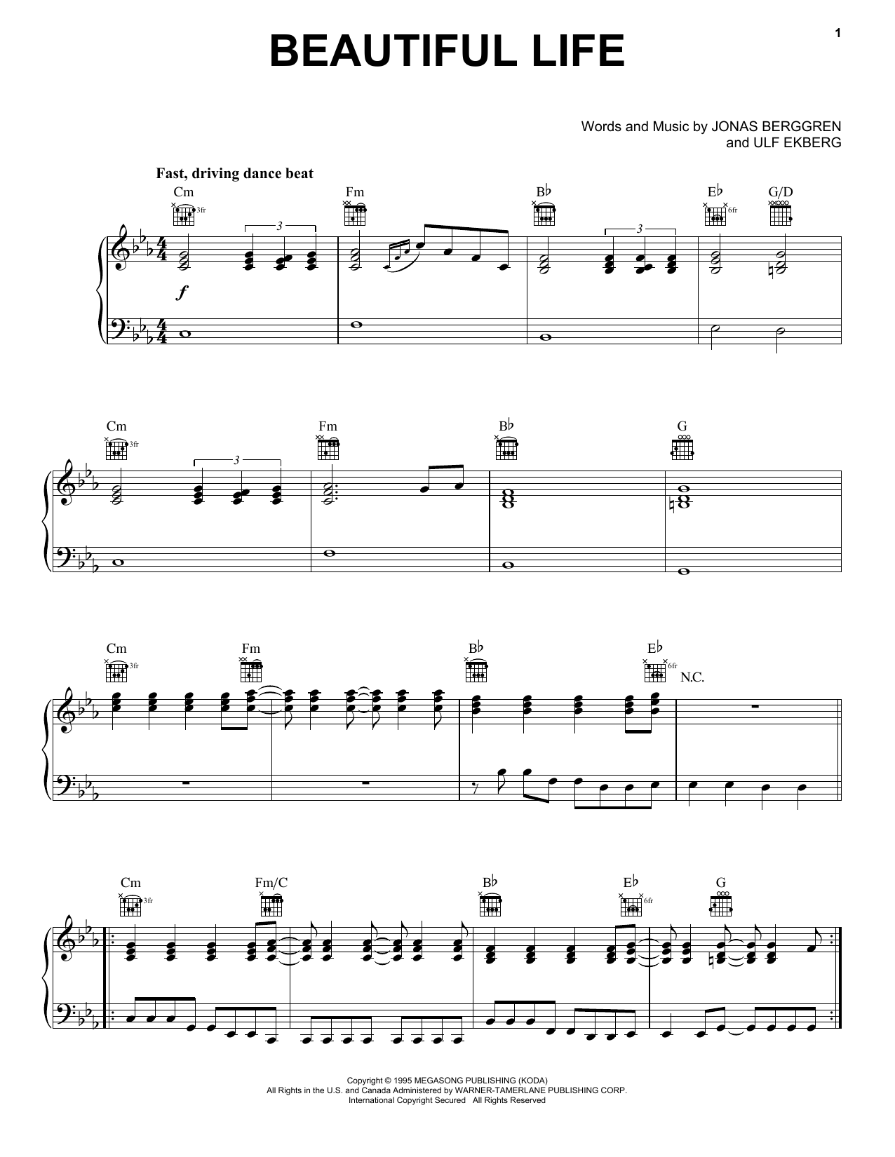 Download or print Ace Of Base Beautiful Life sheet music, chords and digital score arranged for Piano, Vocal & Guitar Chords (Right-Hand Melody). This Pop score includes 7 page(s).