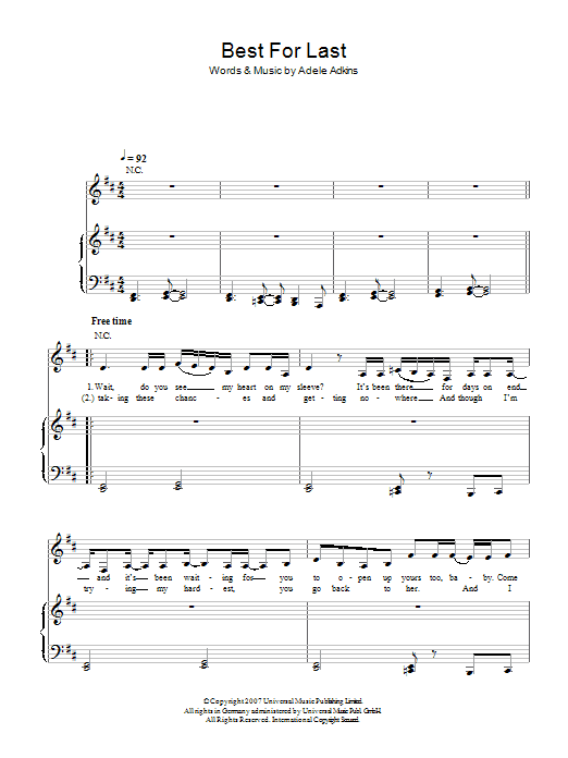 Download or print Adele Best For Last sheet music, chords and digital score arranged for Really Easy Piano. This Pop score includes 3 page(s).