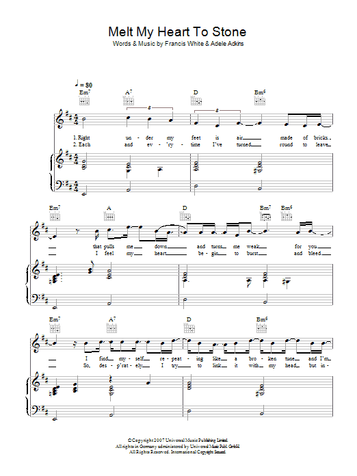 Download or print Adele Melt My Heart To Stone sheet music, chords and digital score arranged for Easy Piano. This Rock score includes 4 page(s).