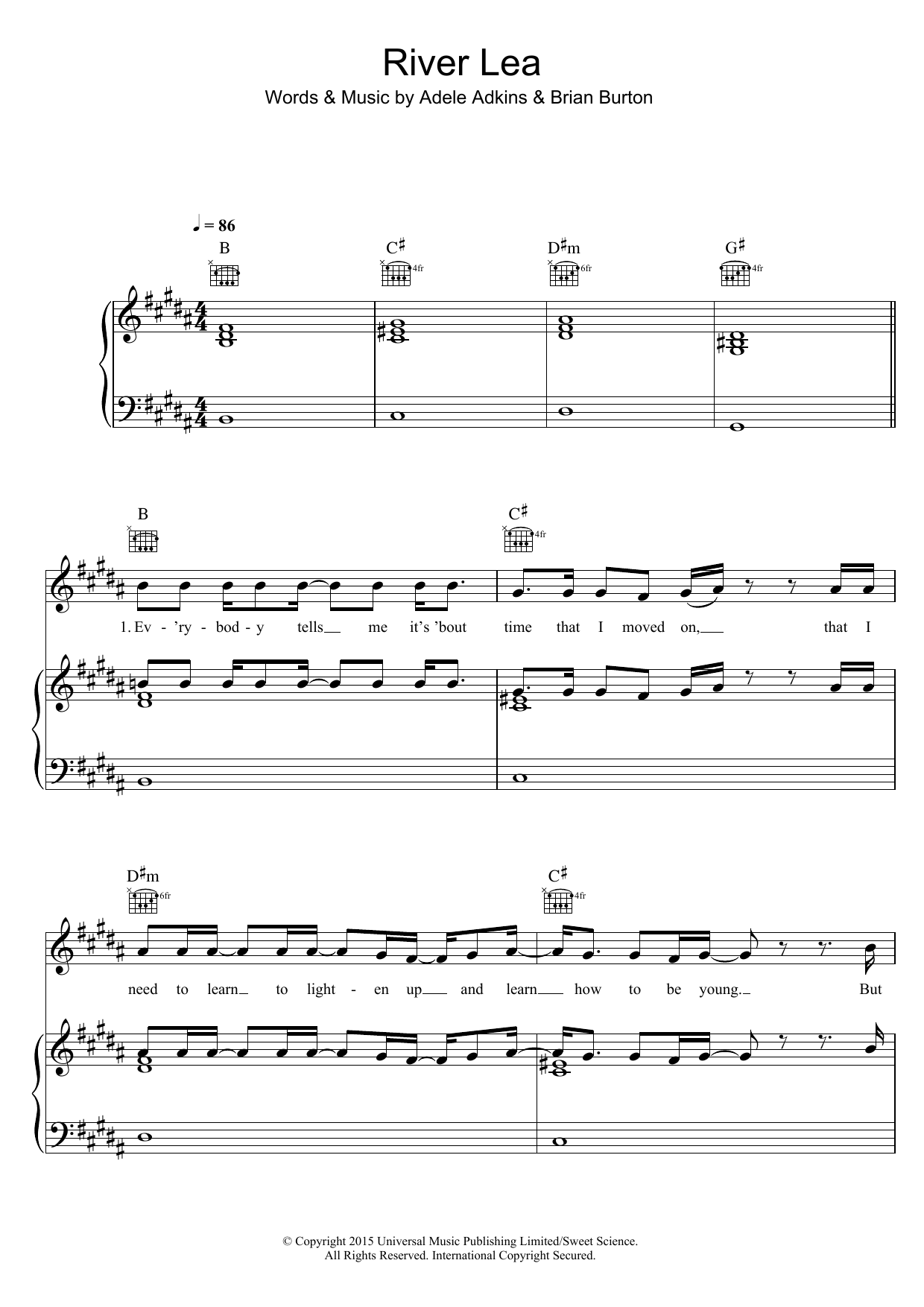 Download or print Adele River Lea sheet music, chords and digital score arranged for Really Easy Piano. This Pop score includes 4 page(s).