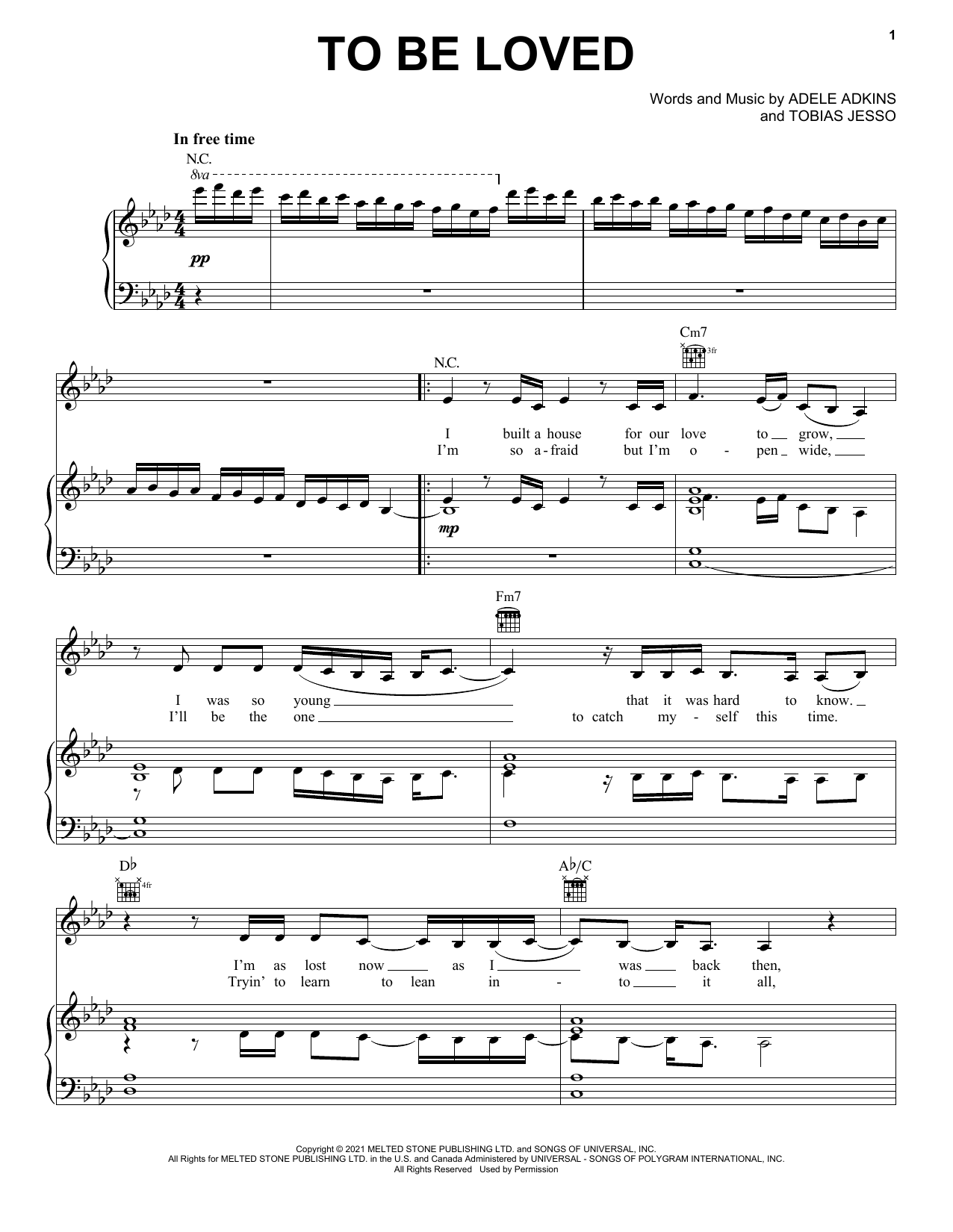 Download or print Adele To Be Loved sheet music, chords and digital score arranged for Really Easy Guitar. This Pop score includes 3 page(s).
