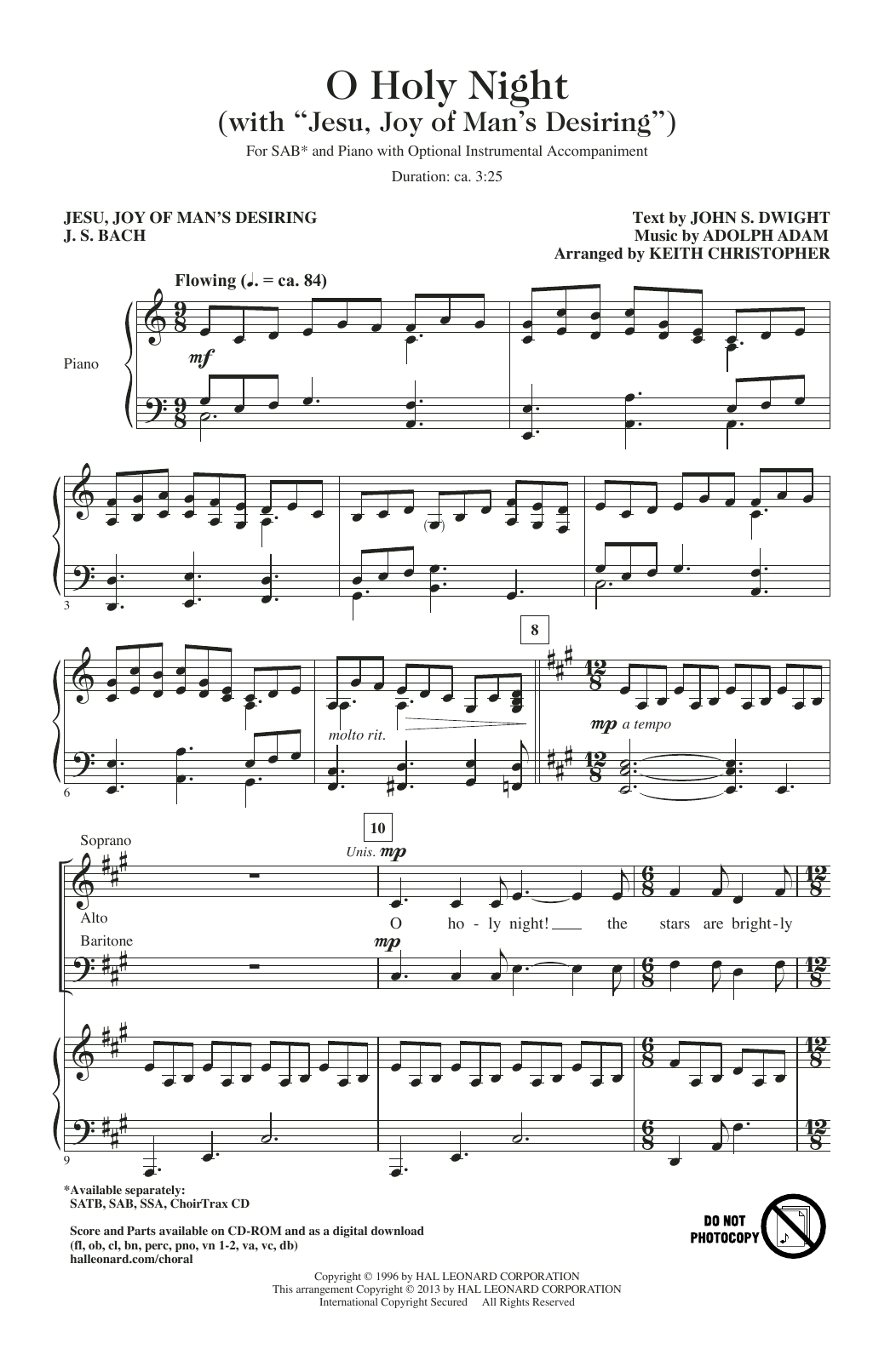 Download or print Keith Christopher O Holy Night (with Jesu, Joy Of Man's Desiring) sheet music, chords and digital score arranged for SAB Choir. This Classical score includes 6 page(s).