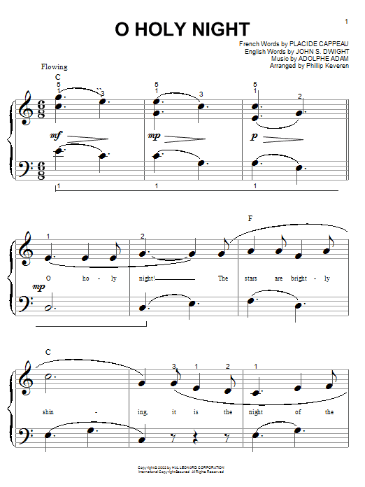 Download or print Adolphe Adam O Holy Night (arr. Phillip Keveren) sheet music, chords and digital score arranged for Big Note Piano. This Christmas score includes 4 page(s).