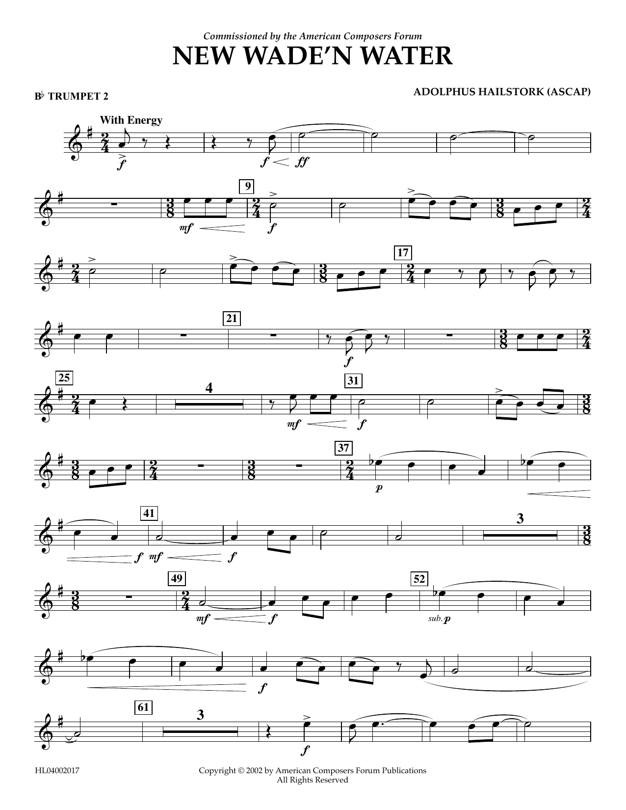 Download or print Adolphus Hailstork New Wade 'n Water - Bb Trumpet 2 sheet music, chords and digital score arranged for Concert Band. This Concert score includes 2 page(s).