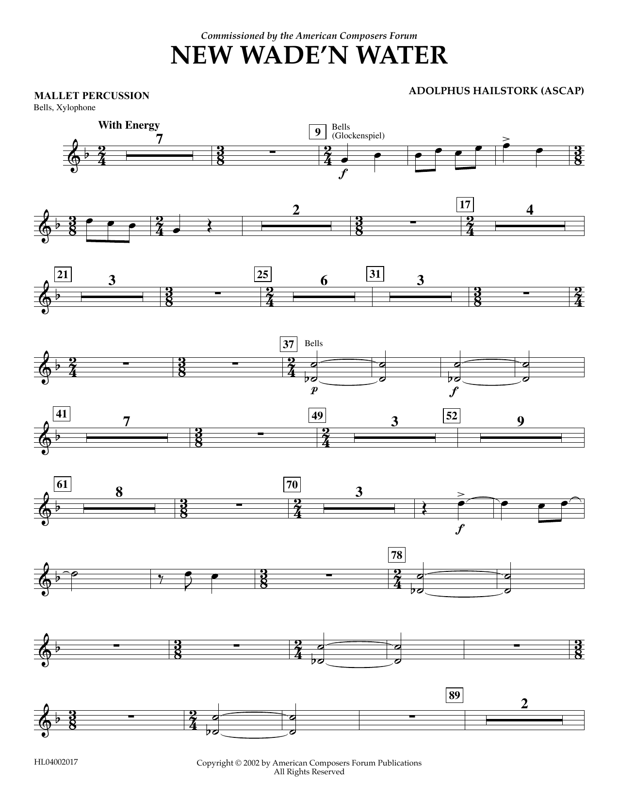 Download or print Adolphus Hailstork New Wade 'n Water - Mallet Percussion sheet music, chords and digital score arranged for Concert Band. This Concert score includes 2 page(s).