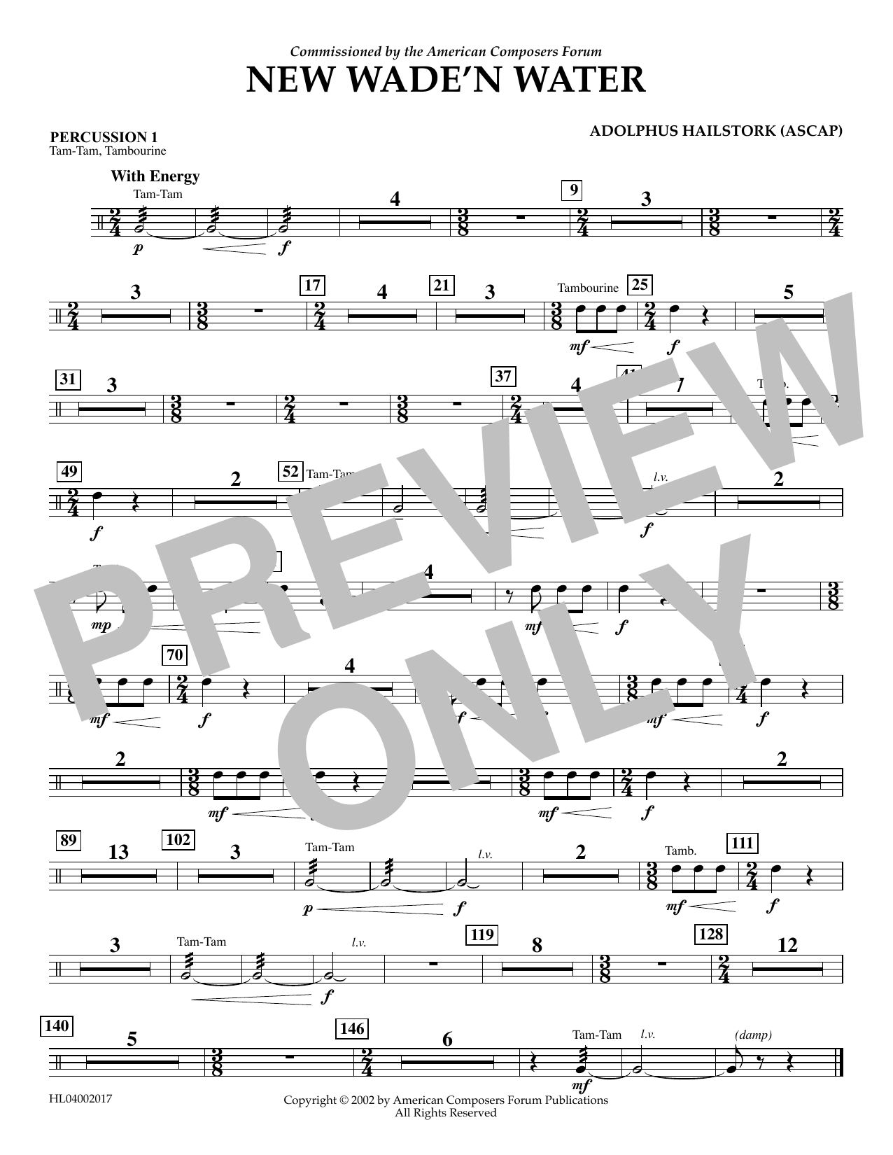 Download or print Adolphus Hailstork New Wade 'n Water - Percussion 1 sheet music, chords and digital score arranged for Concert Band. This Concert score includes 1 page(s).