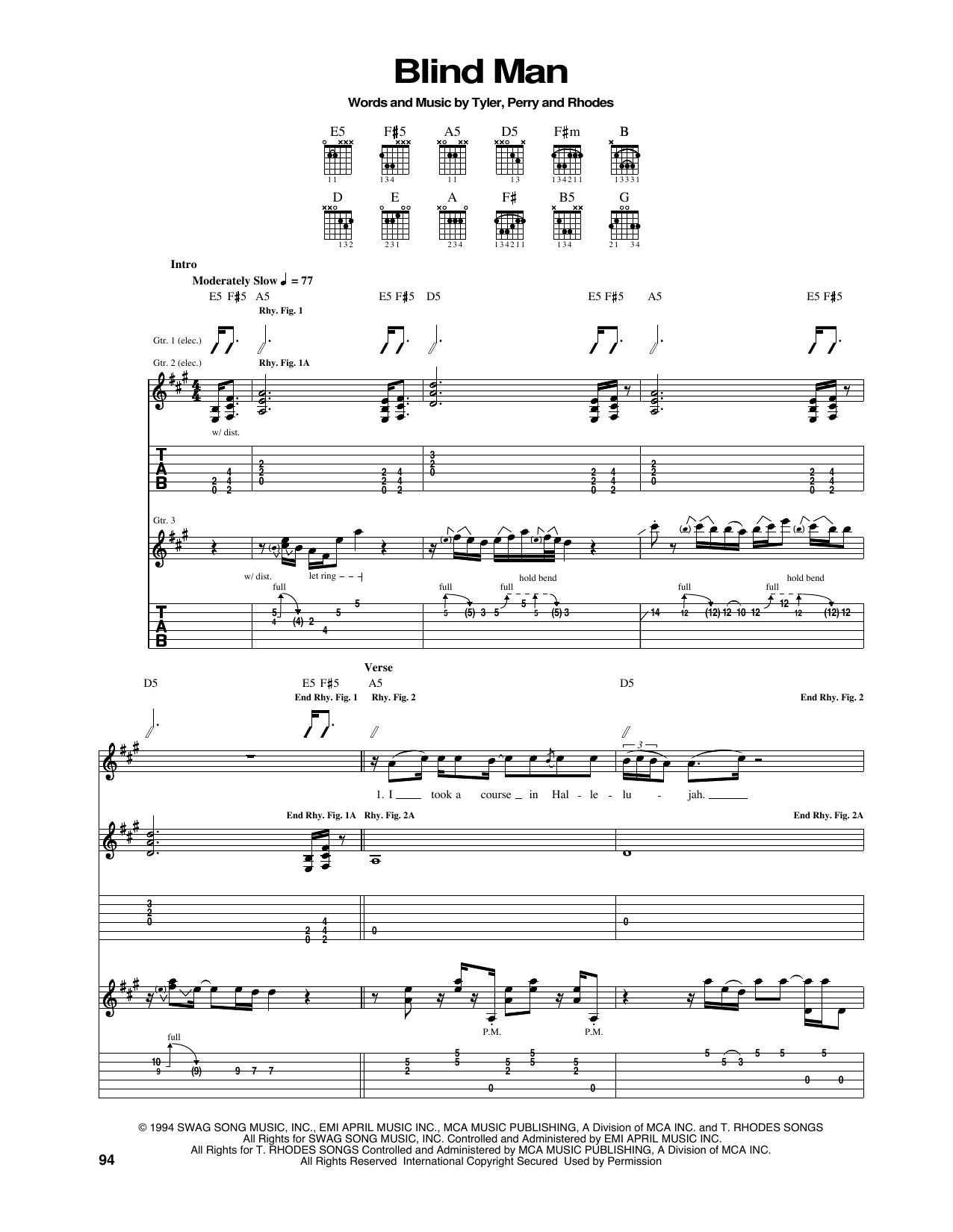 Download or print Aerosmith Blind Man sheet music, chords and digital score arranged for Piano, Vocal & Guitar Chords (Right-Hand Melody). This Rock score includes 10 page(s).