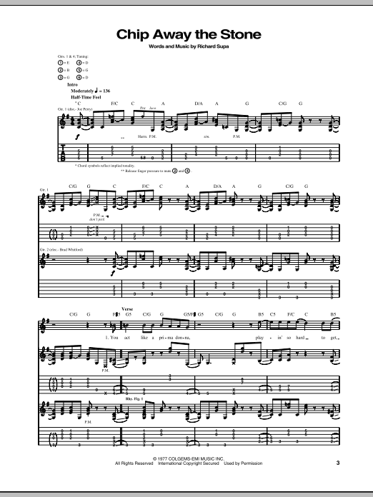 Download or print Aerosmith Chip Away The Stone sheet music, chords and digital score arranged for Guitar Tab. This Metal score includes 14 page(s).