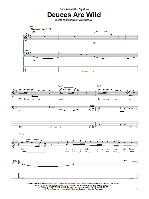Download or print Aerosmith Deuces Are Wild sheet music, chords and digital score arranged for Guitar Tab. This Pop score includes 6 page(s).