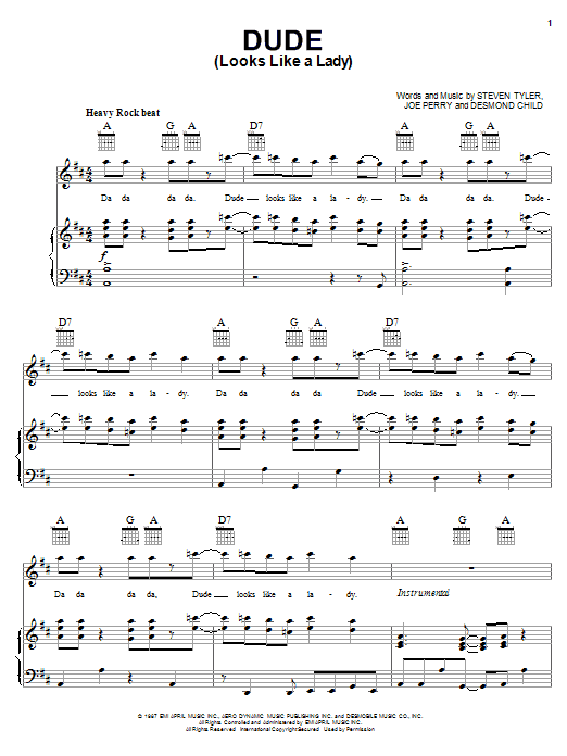 Quick facts Dude (Looks Like A Lady) about digital sheet music