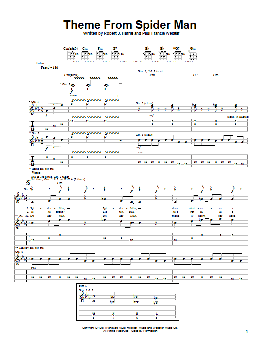 Download or print Aerosmith Theme From Spider-Man sheet music, chords and digital score arranged for Guitar Tab. This Film/TV score includes 5 page(s).