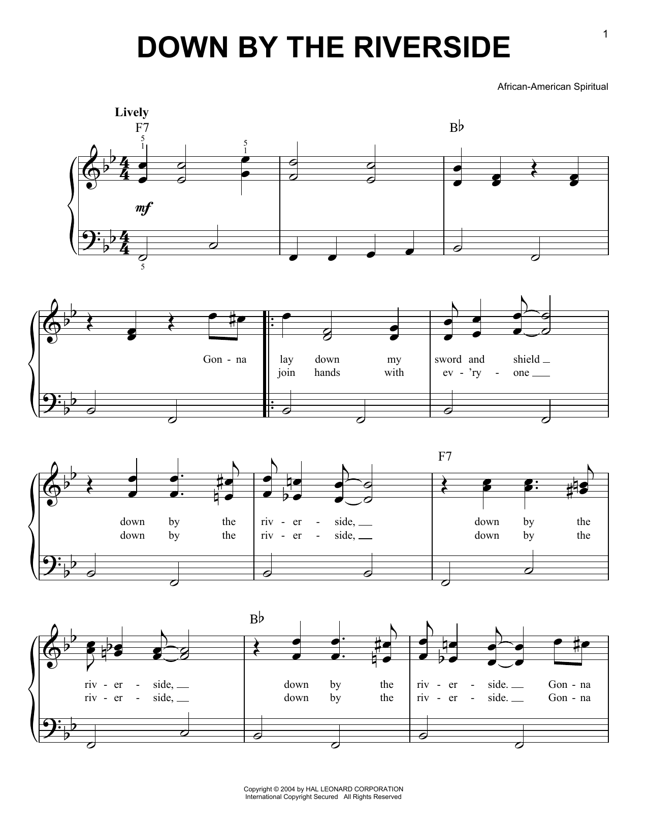 Download or print African-American Spiritual Down By The Riverside sheet music, chords and digital score arranged for Trumpet Solo. This Inspirational score includes 3 page(s).