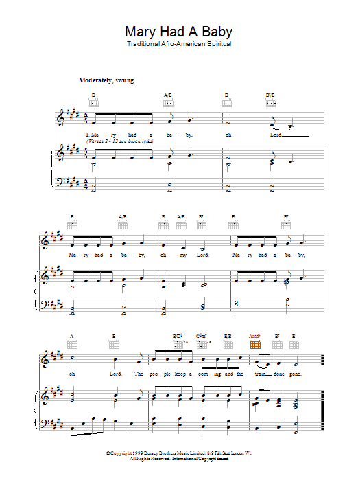 Download or print African-American Spiritual Mary Had A Baby sheet music, chords and digital score arranged for ChordBuddy. This Christmas score includes 1 page(s).