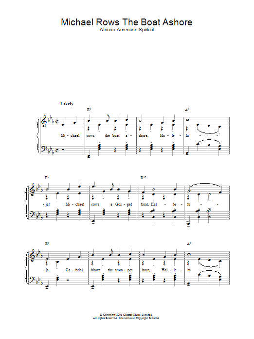 Download or print African-American Spiritual Michael Rows The Boat Ashore sheet music, chords and digital score arranged for Easy Piano. This Inspirational score includes 2 page(s).
