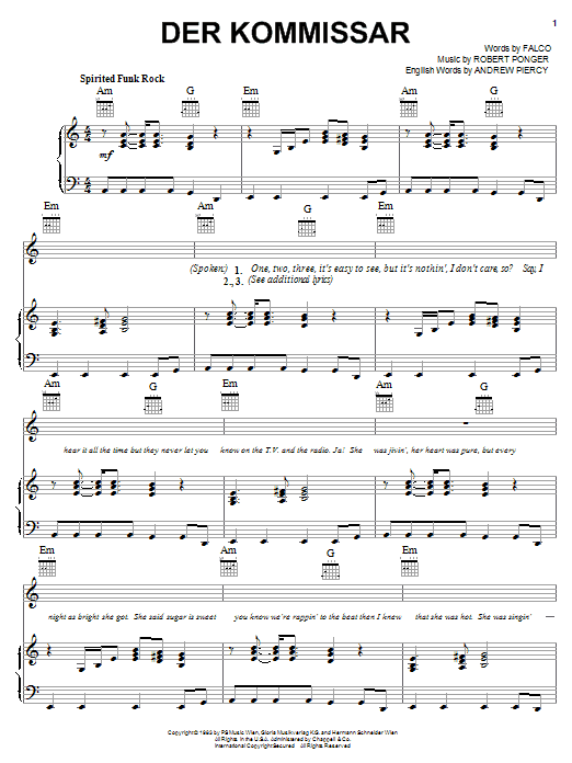 Download or print After The Fire Der Kommissar sheet music, chords and digital score arranged for Piano, Vocal & Guitar Chords (Right-Hand Melody). This Rock score includes 4 page(s).