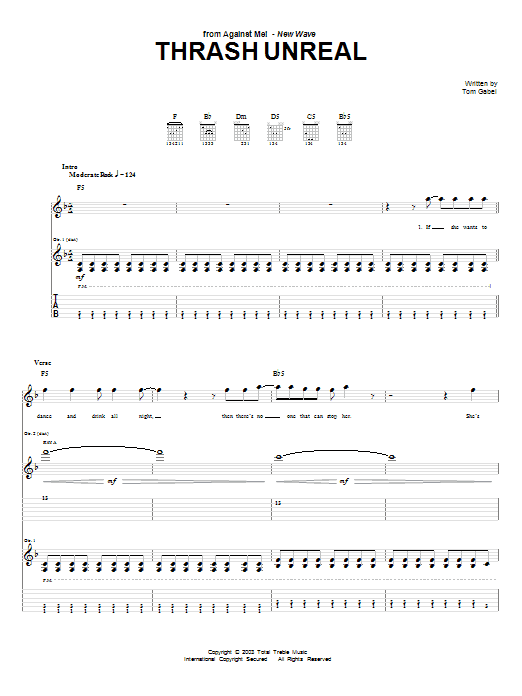 Download or print Against Me! Thrash Unreal sheet music, chords and digital score arranged for Guitar Tab. This Pop score includes 10 page(s).