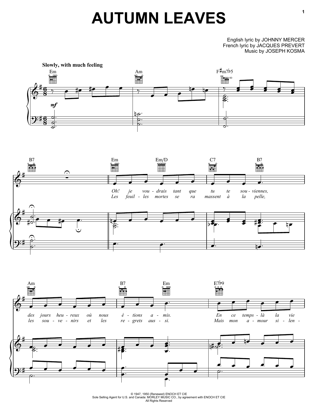 Quick facts Autumn Leaves about digital sheet music