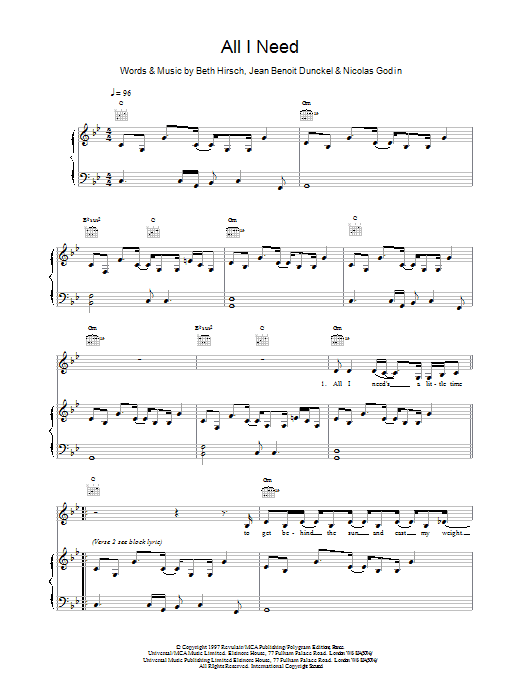 Download or print Air All I Need sheet music, chords and digital score arranged for Guitar Chords/Lyrics. This Pop score includes 2 page(s).