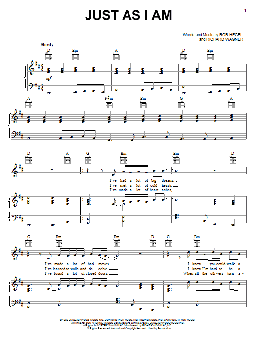 Download or print Air Supply Just As I Am sheet music, chords and digital score arranged for Piano, Vocal & Guitar Chords (Right-Hand Melody). This Love score includes 5 page(s).