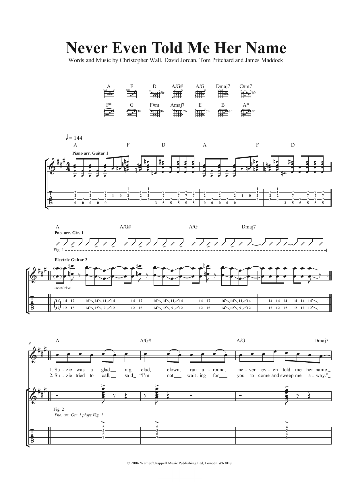 Download or print Air Traffic Never Even Told Me Her Name sheet music, chords and digital score arranged for Guitar Tab. This Pop score includes 4 page(s).
